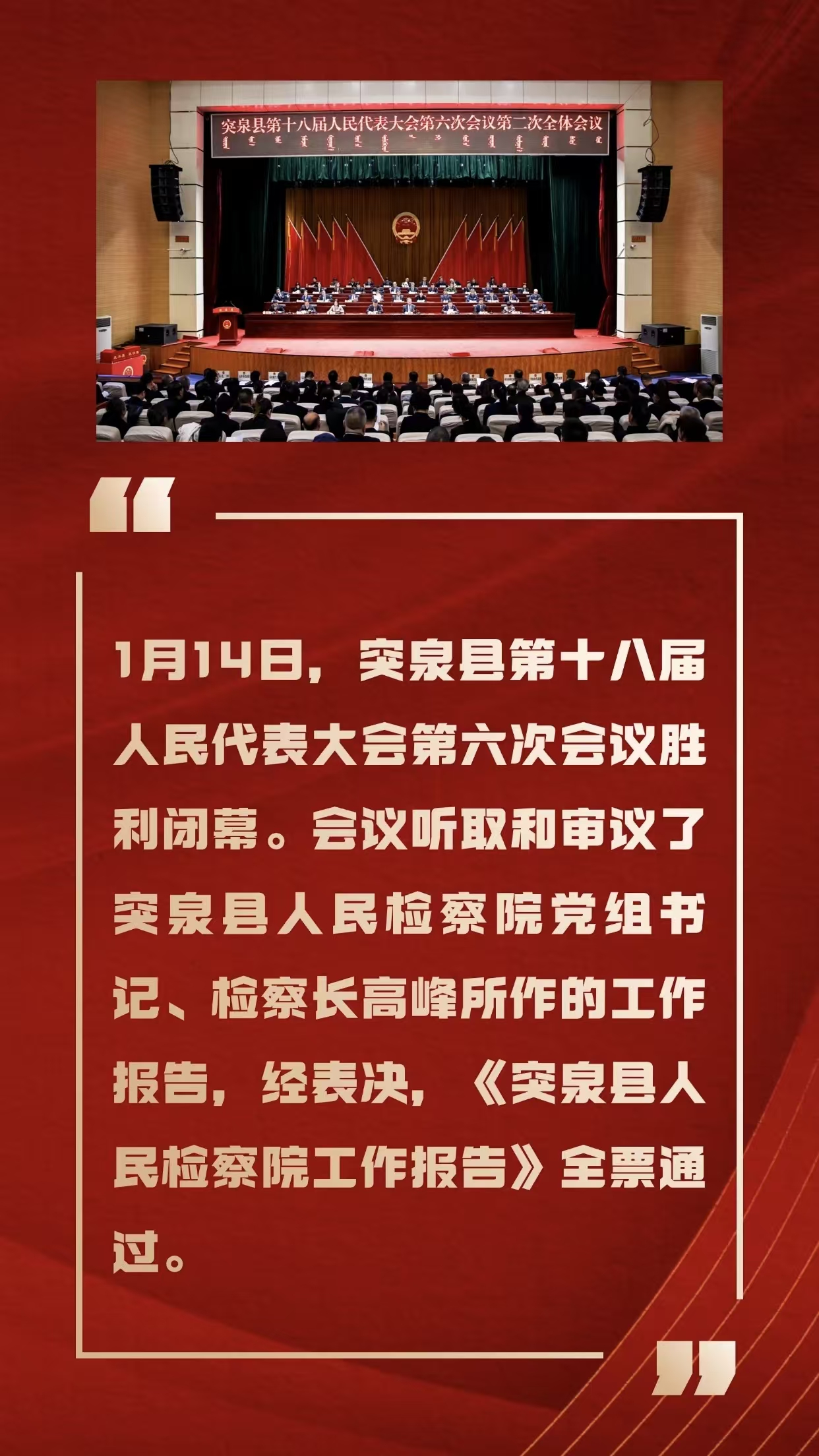突泉县人民检察院工作报告获全票通过